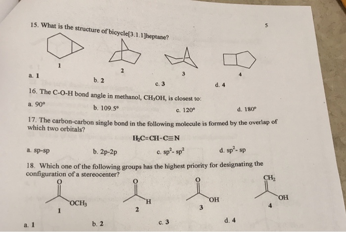 Solved 15 What Is The Structure Of Bicyclel3 1 1jheptane Chegg Com